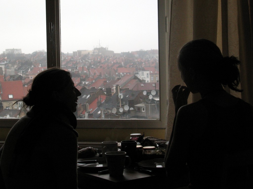Von Sofias Wohnzimmer aus lässt sich, ausgiebig frühstückend, der Brüsseler Regen gemütlich genießen