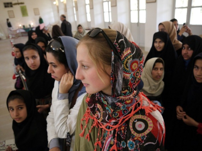 Die Schulklasse aus Kerman findet den Feuertempel, der in den 1930er Jahren von indischen Zarathustra-Verehrern gestiftet wurde, langweilig. Das kann ich gut verstehen, er ist in der Tat nicht sehr spektakulär. Beträchtlich hingegen ist ihre Faszination für eine blonde, große Schönheit aus dem fernen Okzident. Auch das kann ich gut verstehen. Doch das Starren, Scharen und Handyfotos schießen der Schülerinnen ist ungewohnt. Ihre Lehrer versuchen nur halbherzig, sie davon abzuhalten – Auch sie sind handlungsunfähig erstarrt in einer Mischung aus Ehrfurcht, Fassungslosigkeit und Neugierde.