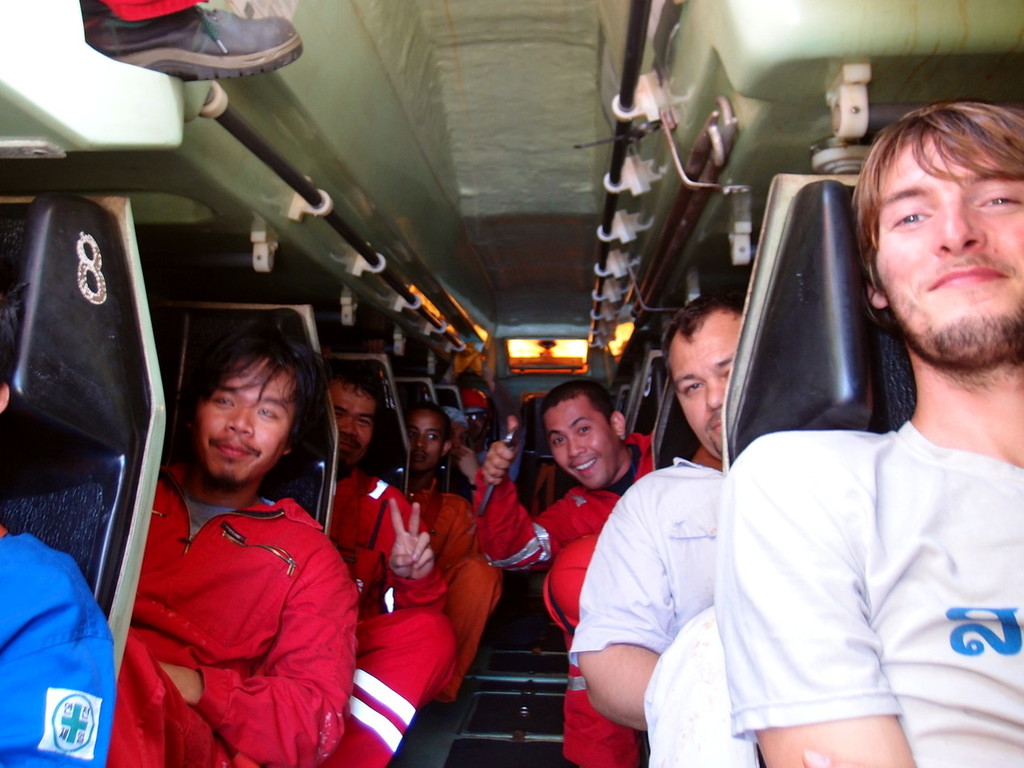 Gute Laune trotz beklemmender Umgebung: In dieser Kapsel von Wellen und Dünung durchgepeitscht zu werden blieb uns Gott sei Dank erspart.