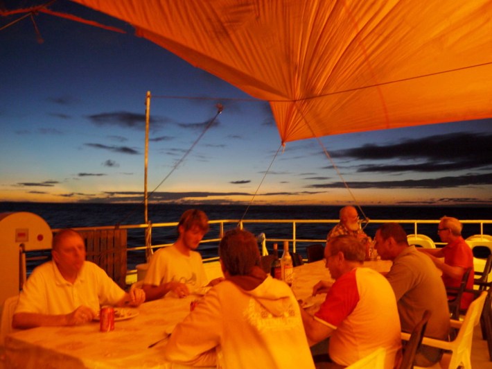 …und gesittetes Verhalten bei den Oberen. Was läge näher, hier auf See, als gepflegtes Volllaufenlassen?